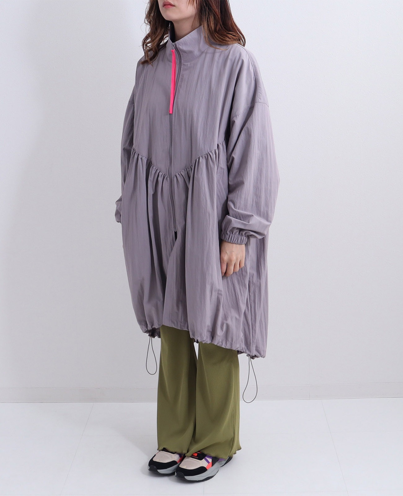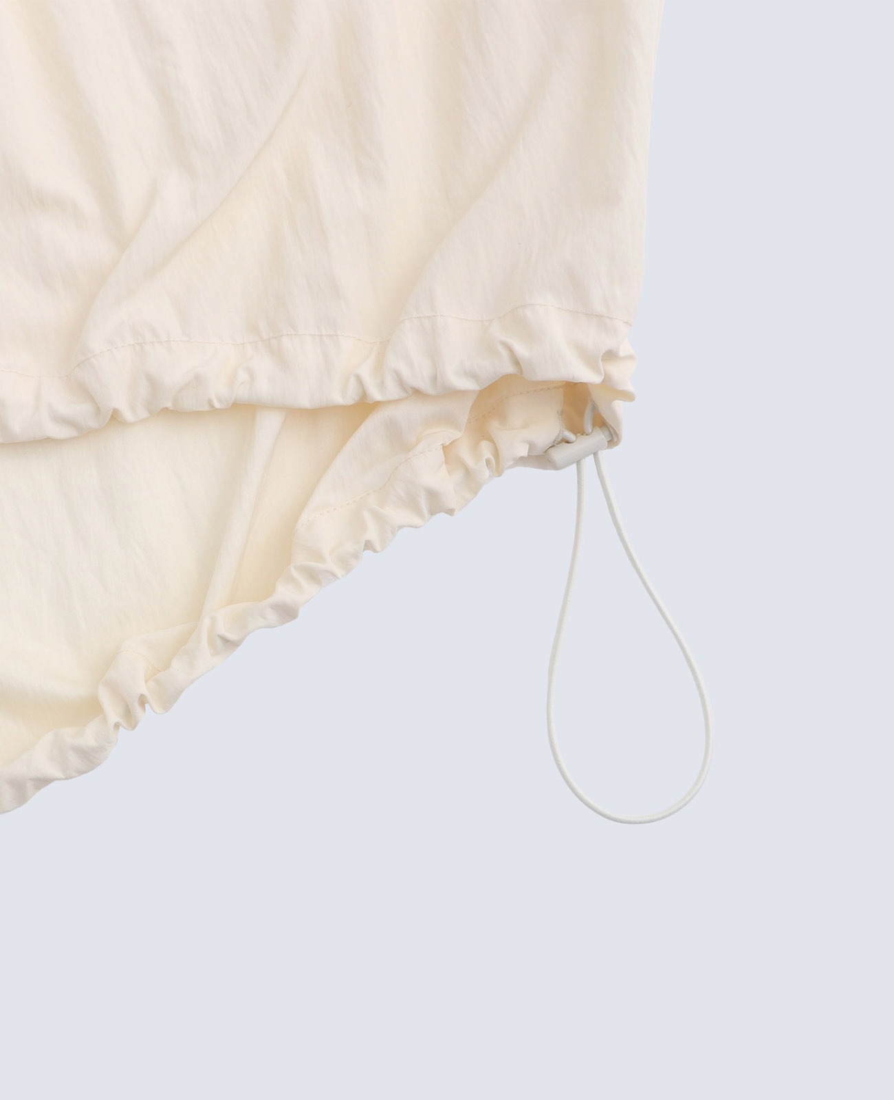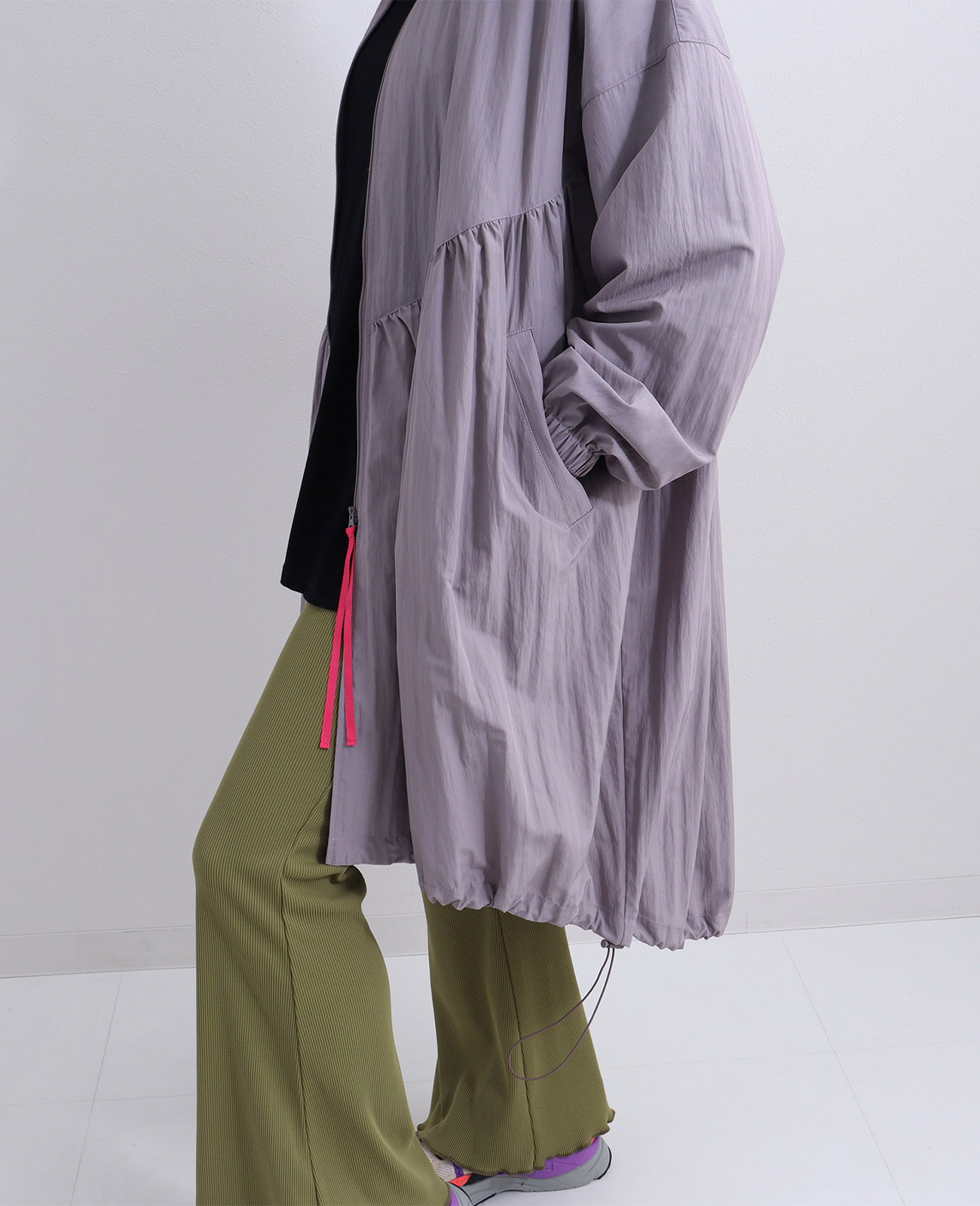 裾にドロストがついているので、お好みのシルエットに調整可能です。