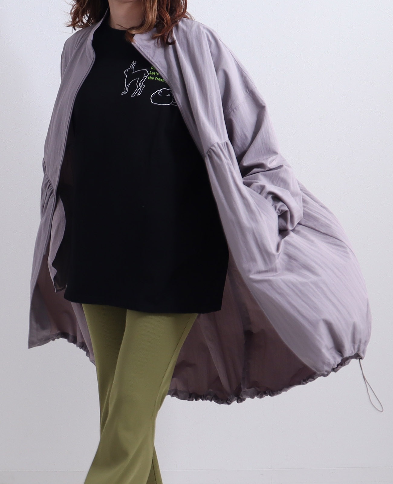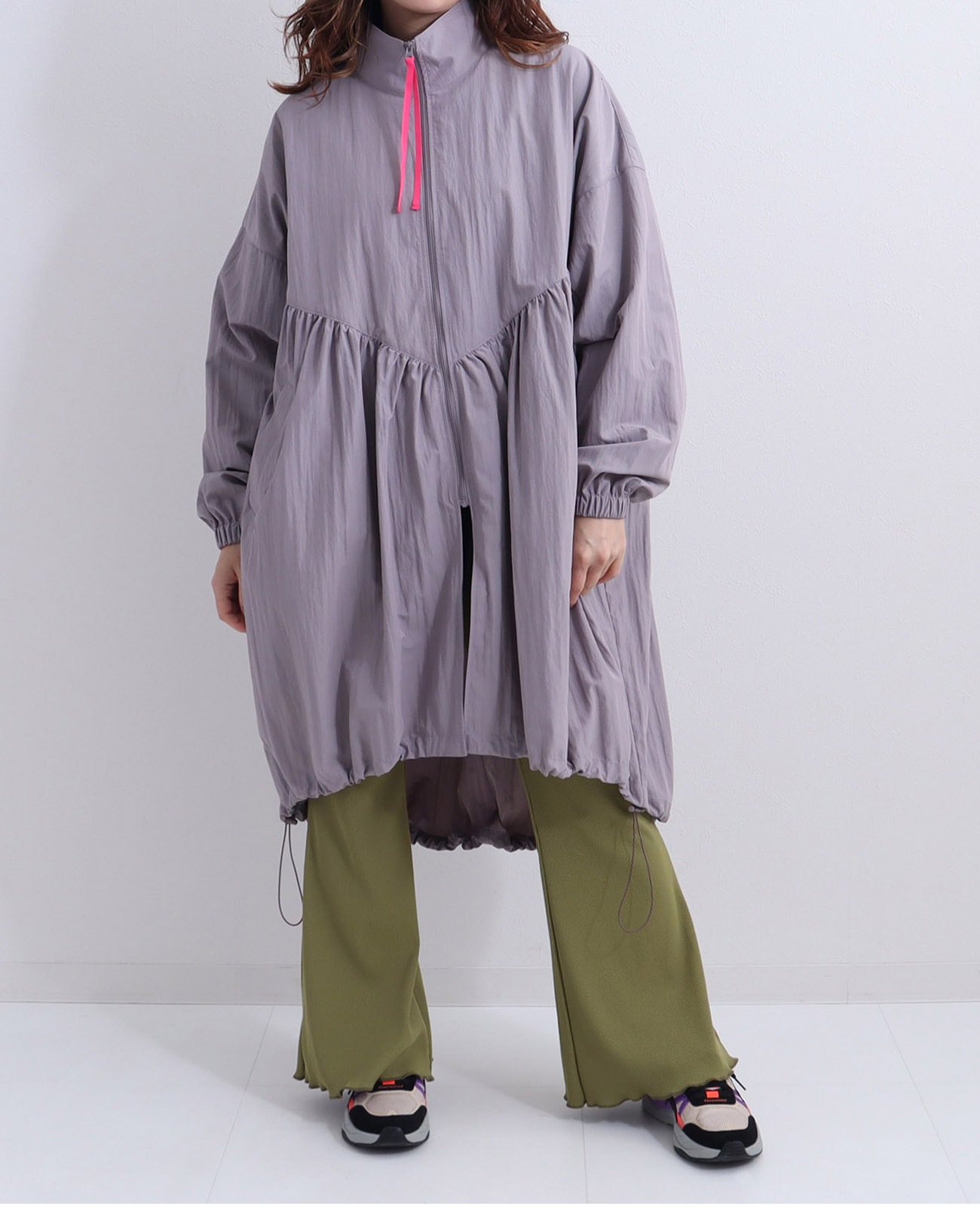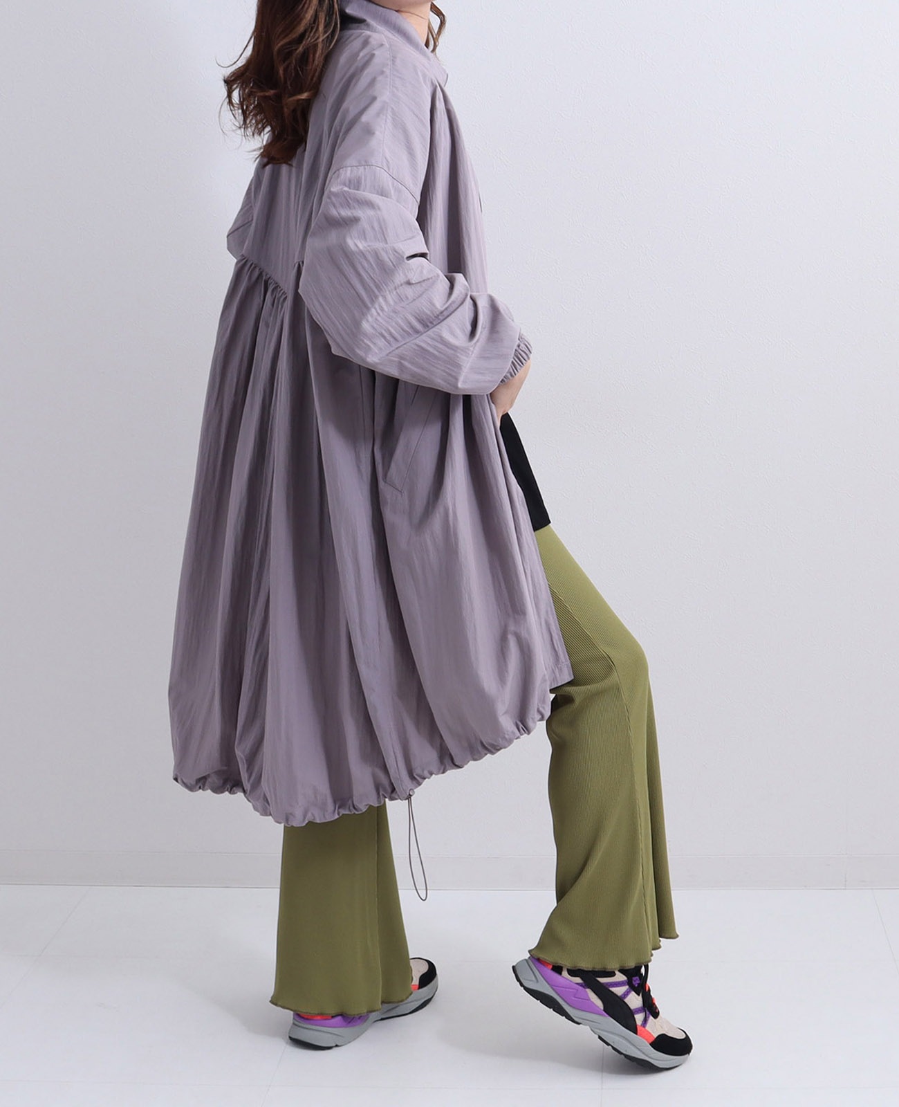 裾にドロストがついているので、お好みのシルエットに調整可能です。
