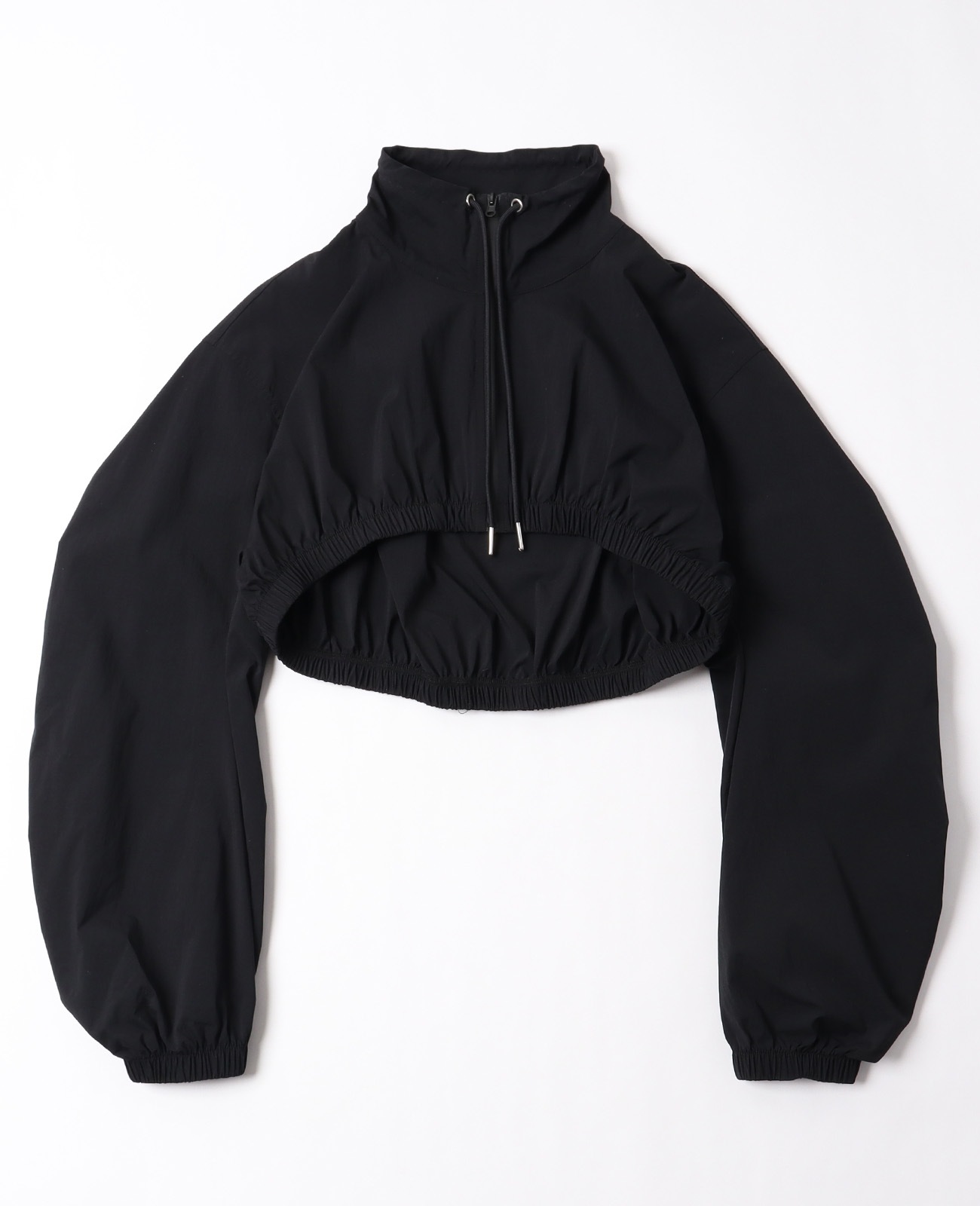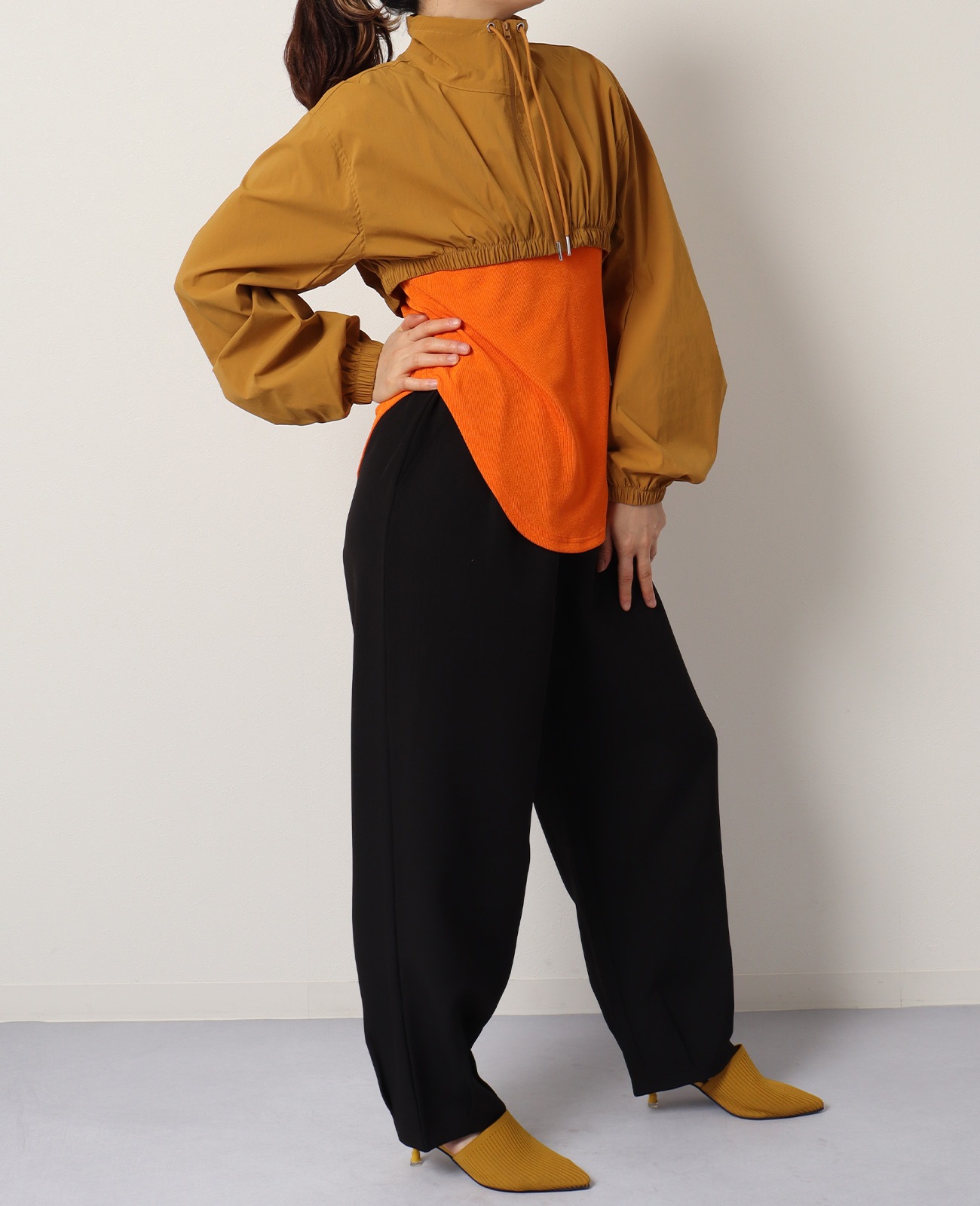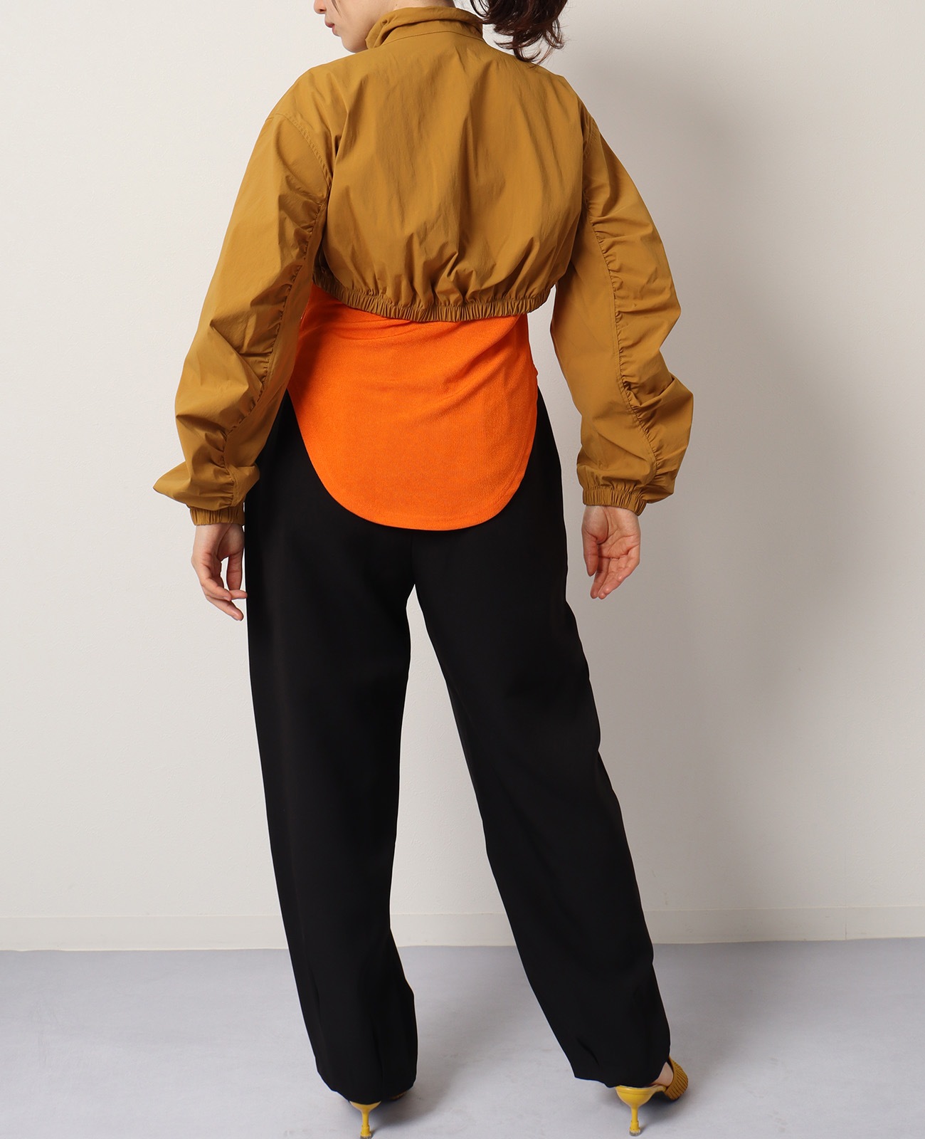 コンパクトな身頃に対し、ギャザースリーブで腕にボリュームを持たせています。