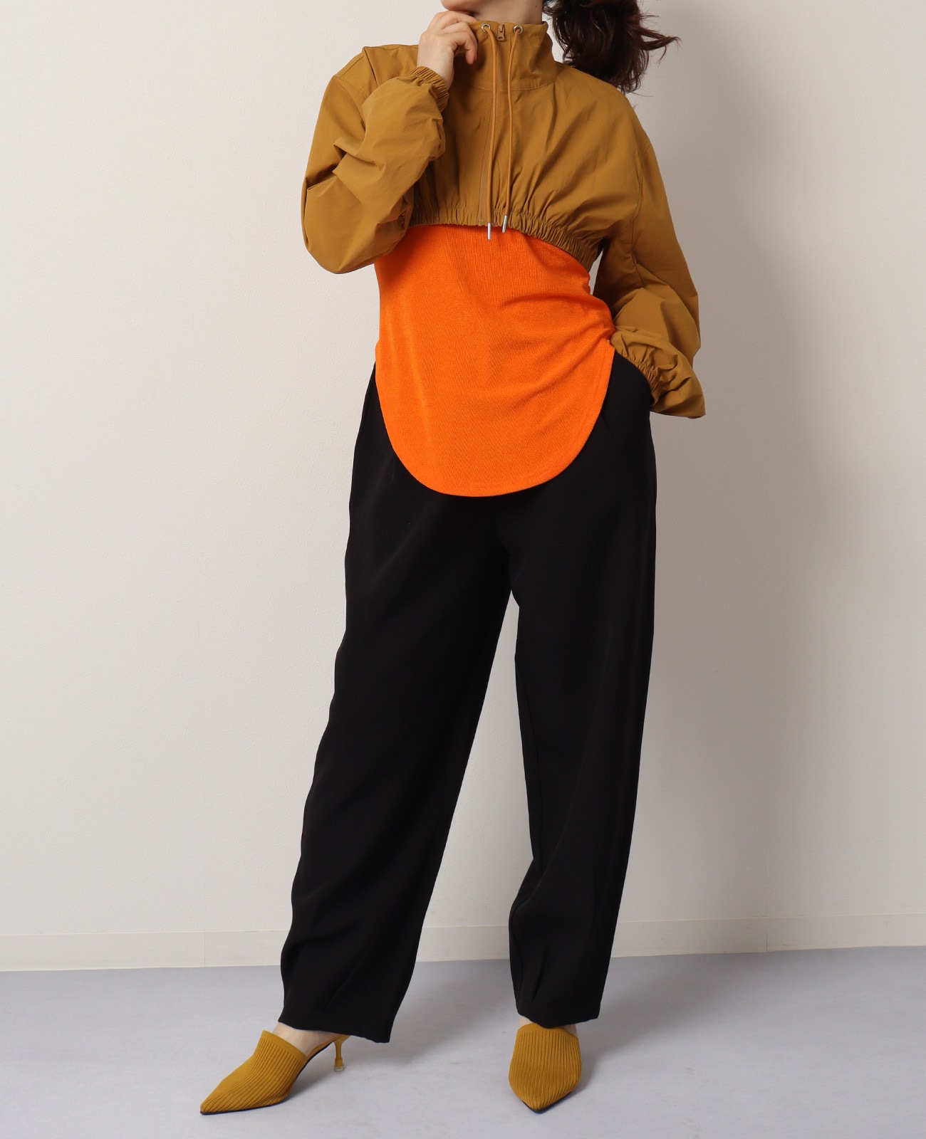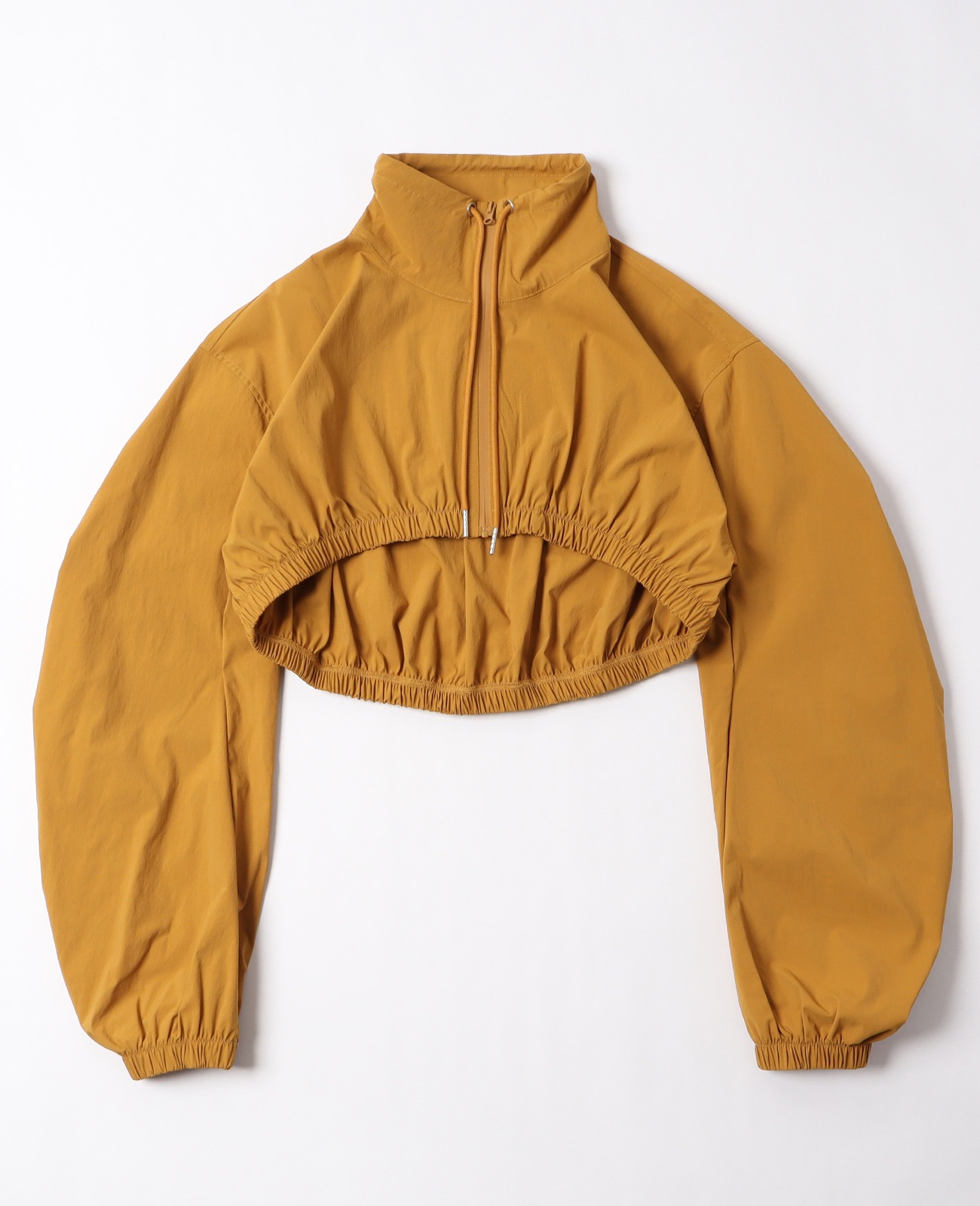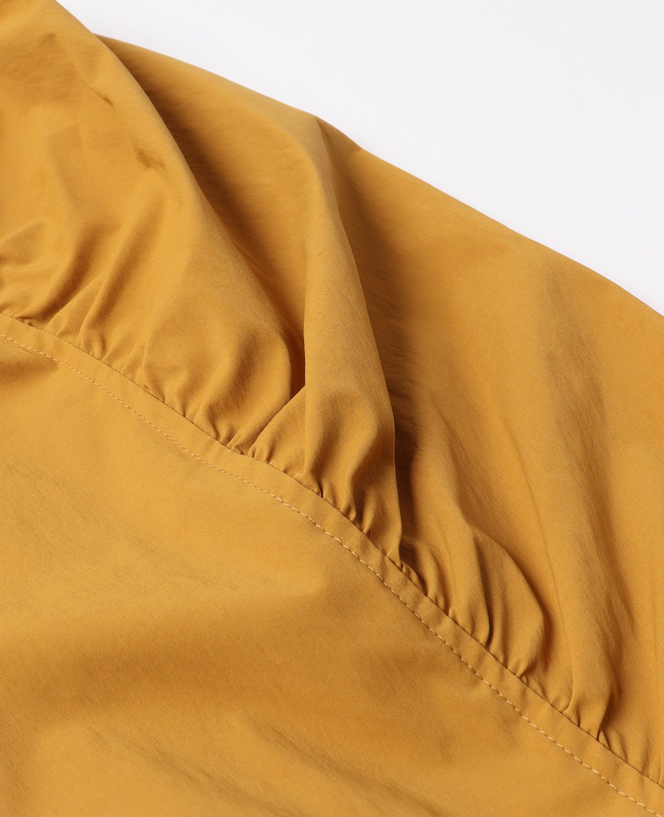 コンパクトな身頃に対し、ギャザースリーブで腕にボリュームを持たせています。