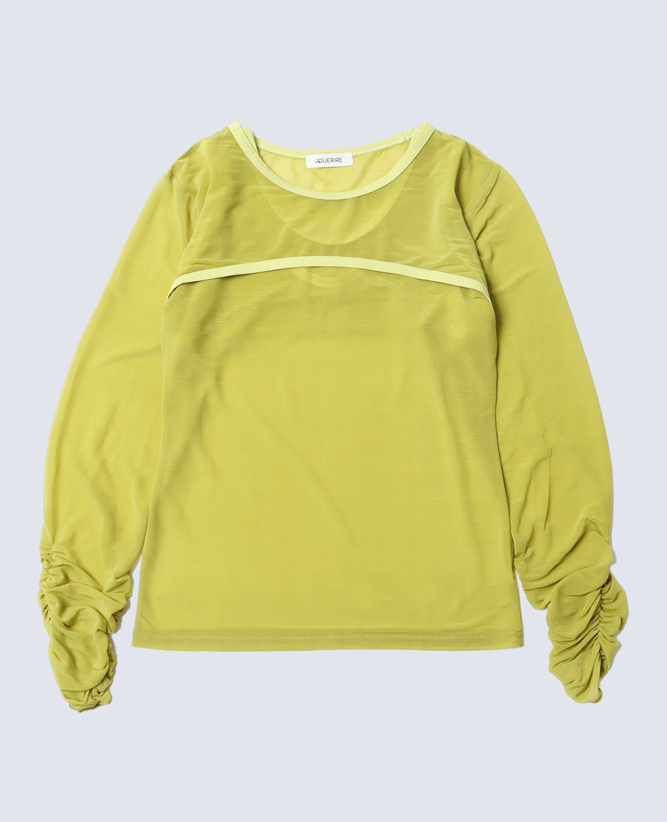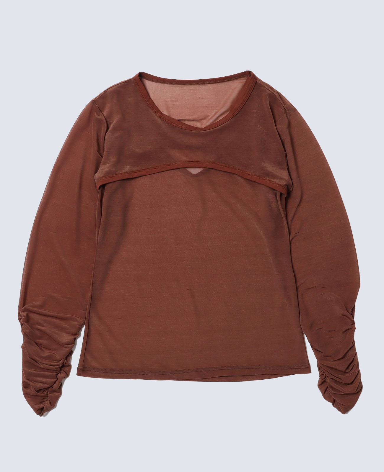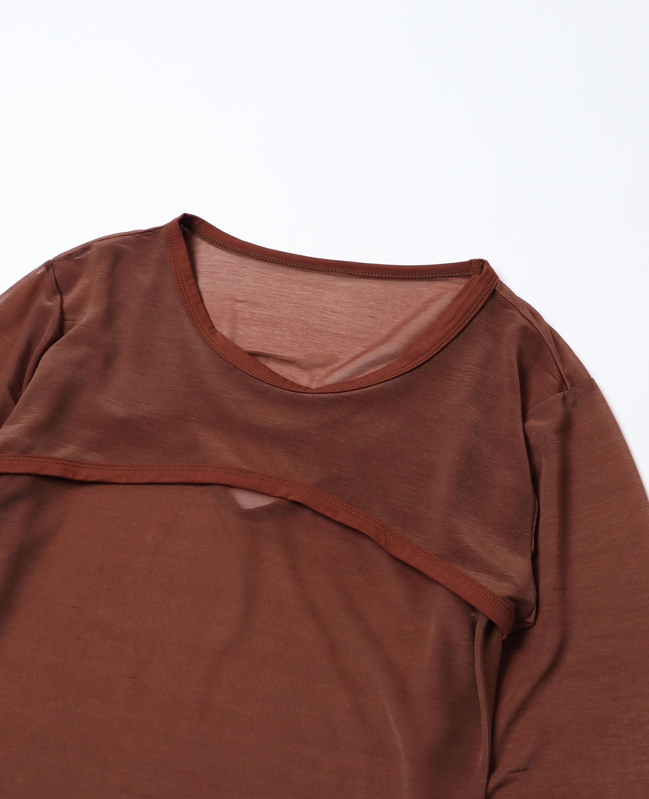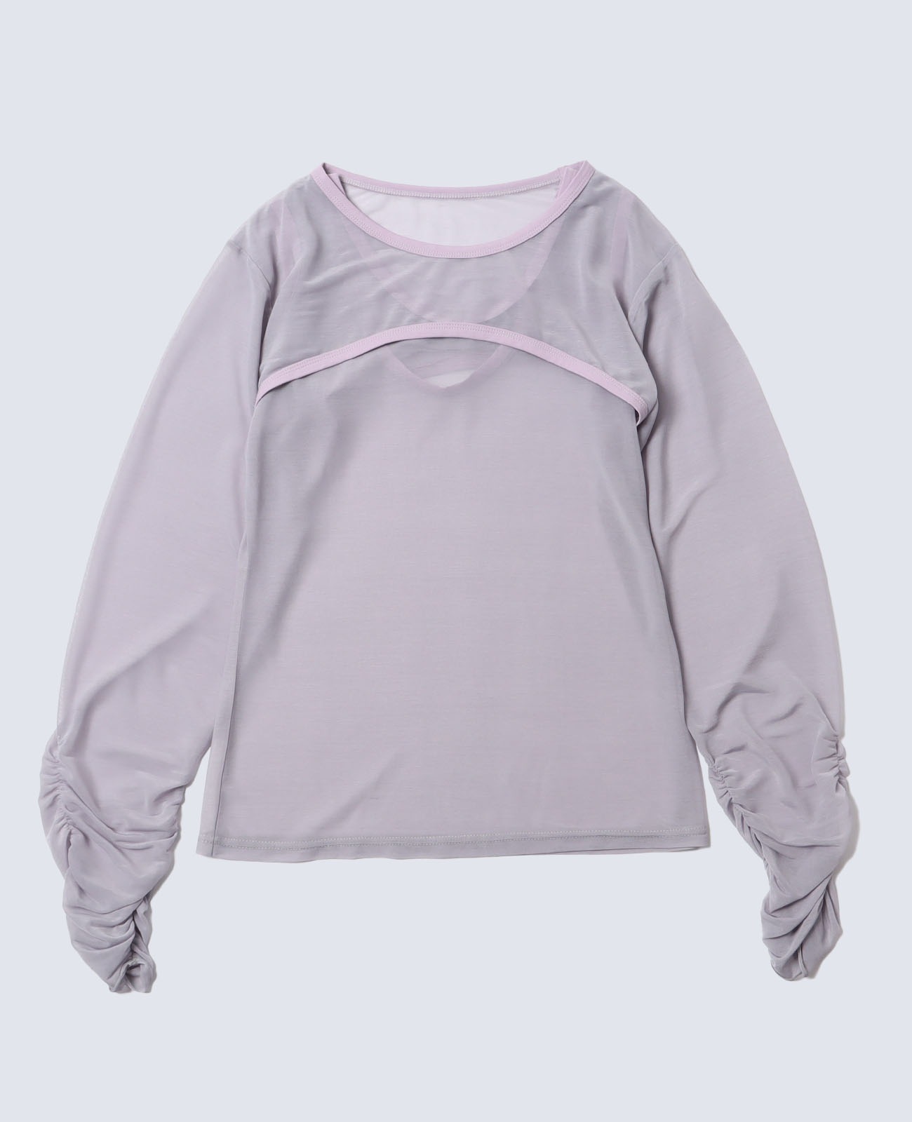 ボレロ感覚で羽織れるクロップド丈の長袖と、2WAY仕様のタンクトップをセットにしたプレイフルなアンサンブル。