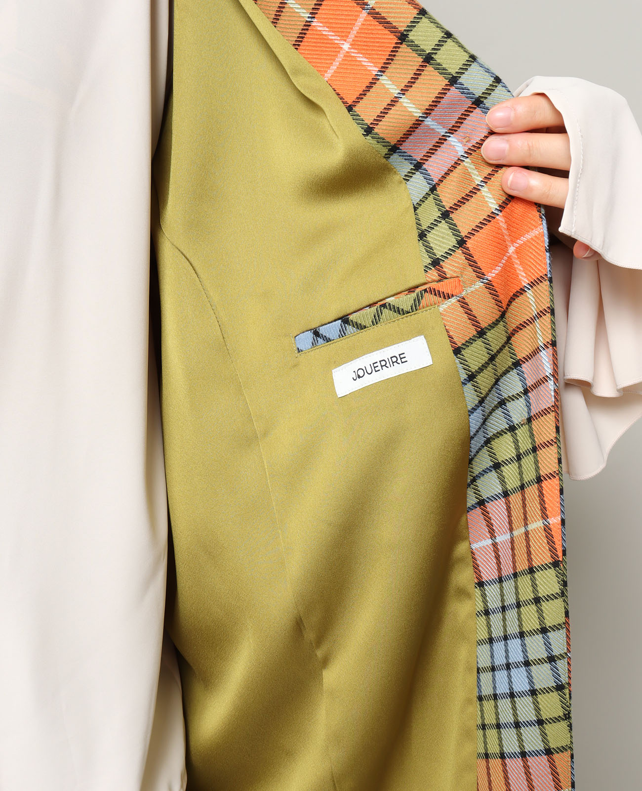 裏地はプレイフル配色で脱いでも隙のなさが伺えます。