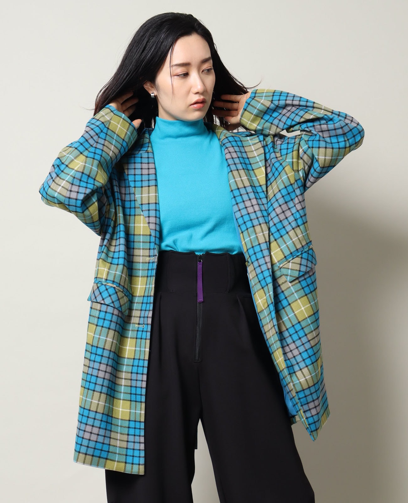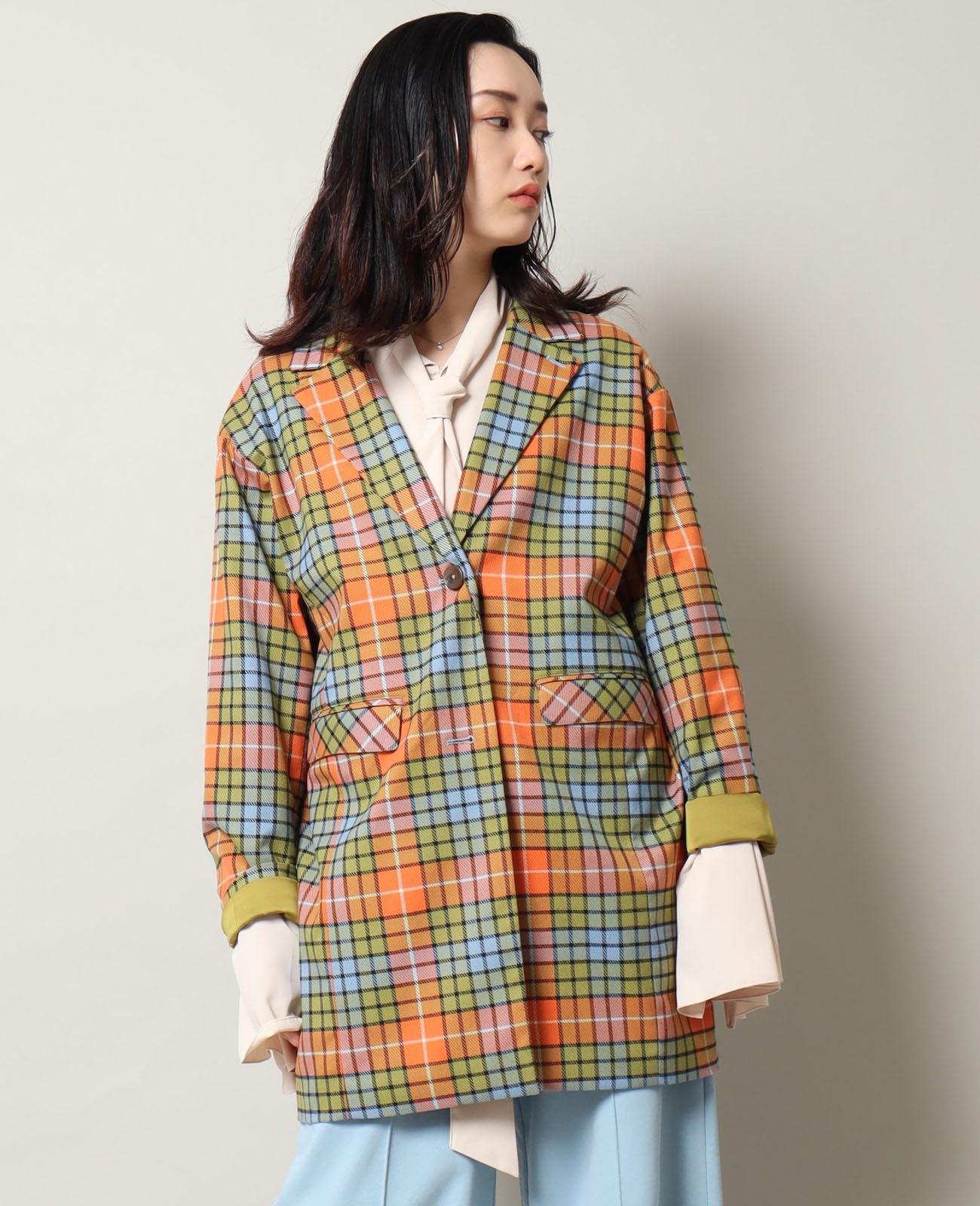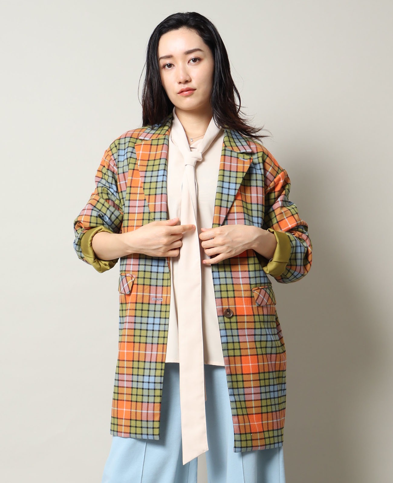 ボックスシルエットのセミロング丈ジャケットは、着るだけで「場の空気を握る人」になれる。