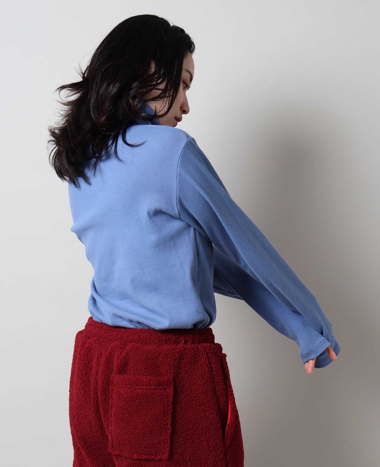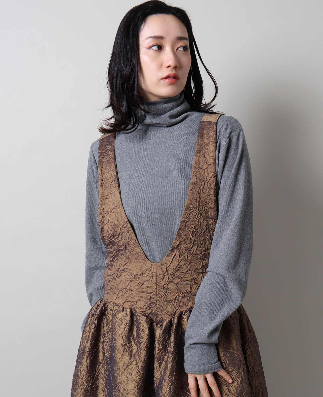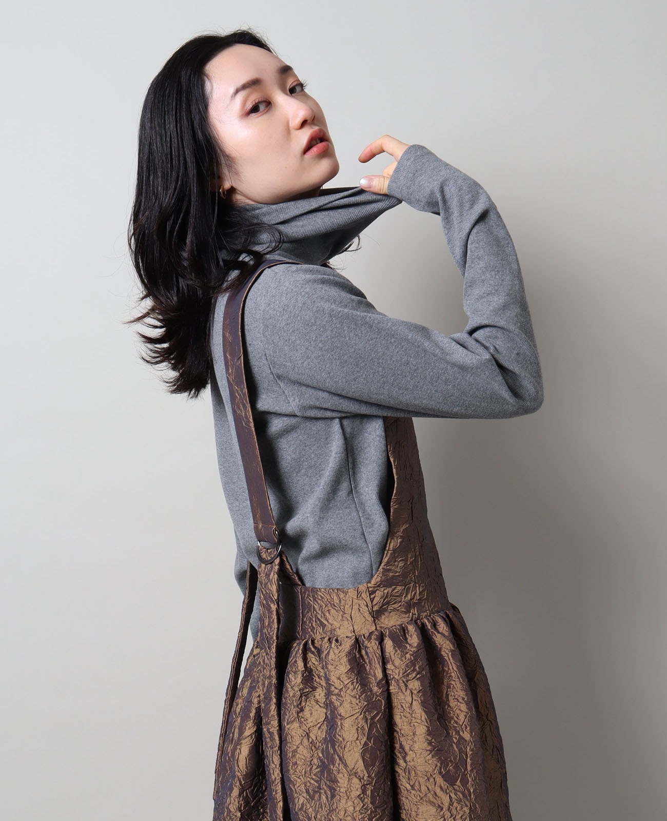ボリューム感のあるタートルは、くしゅっと寄せても折り返しても美しく決まる。